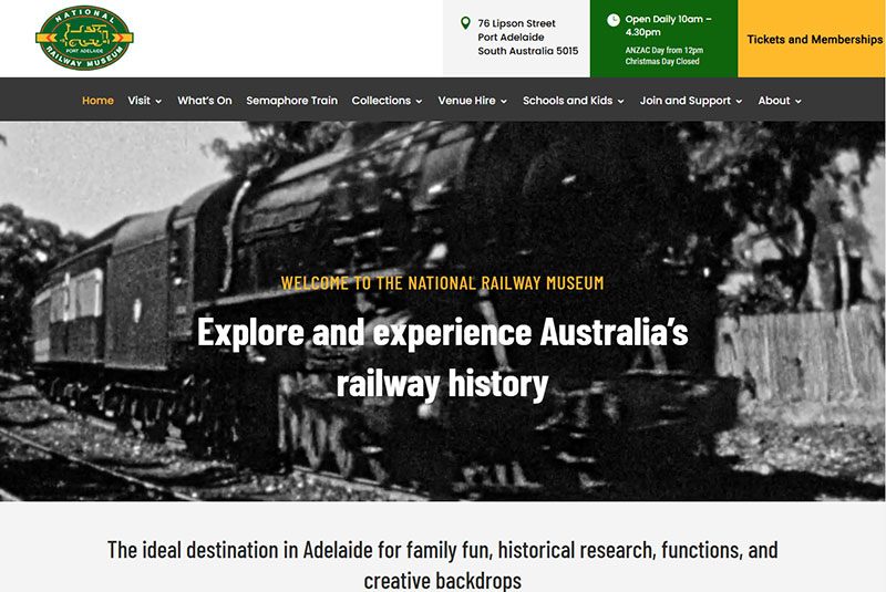 The National Railway Museum, Port Adelaide. A heritage-focused website showcasing South Australia’s rich railway history with engaging visuals, visitor-friendly navigation, and features designed to inspire exploration and learning. Visit website →