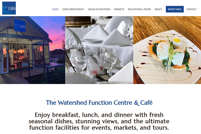 The Watershed Function Centre & Café, Mawson Lakes, North Adelaide. An elegant website showcasing its exceptional dining experience from morning to evening, venue details and event services, with easy access to menus and booking inquiries. Visit website →