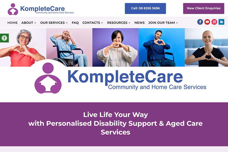 KompleteCare, Adelaide & Perth, Australia. A welcoming & informative website providing disability support and aged care services, including in-home care, social support, clinical services, and support coordination to the highest standards of care. Visit website →