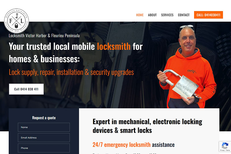 Fleurieu Locksmith, Victor Harbor, SA. A comprehensive and mobile-friendly website detailing residential and commercial locksmith services provided by a certified Master Locksmith with 24 years of experience. Visit website →