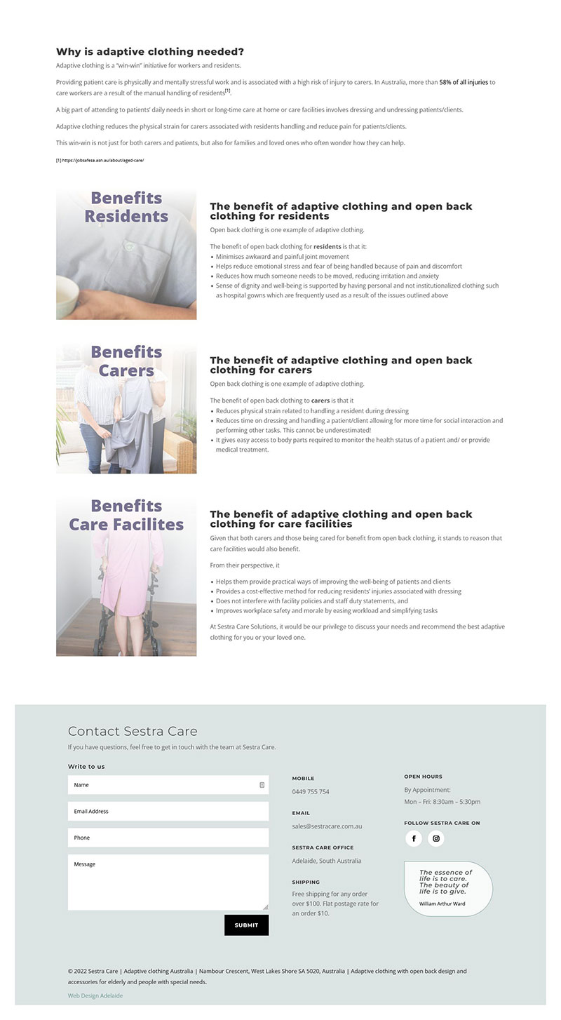 Adina, the owner of Sestra Care, had many problems with the website when she was recommended to talk about the issues and worries to Website Adelaide. The eCommerce store was not functioning, the website was loading extremely slow, and she was nowhere to be found on a Google search.