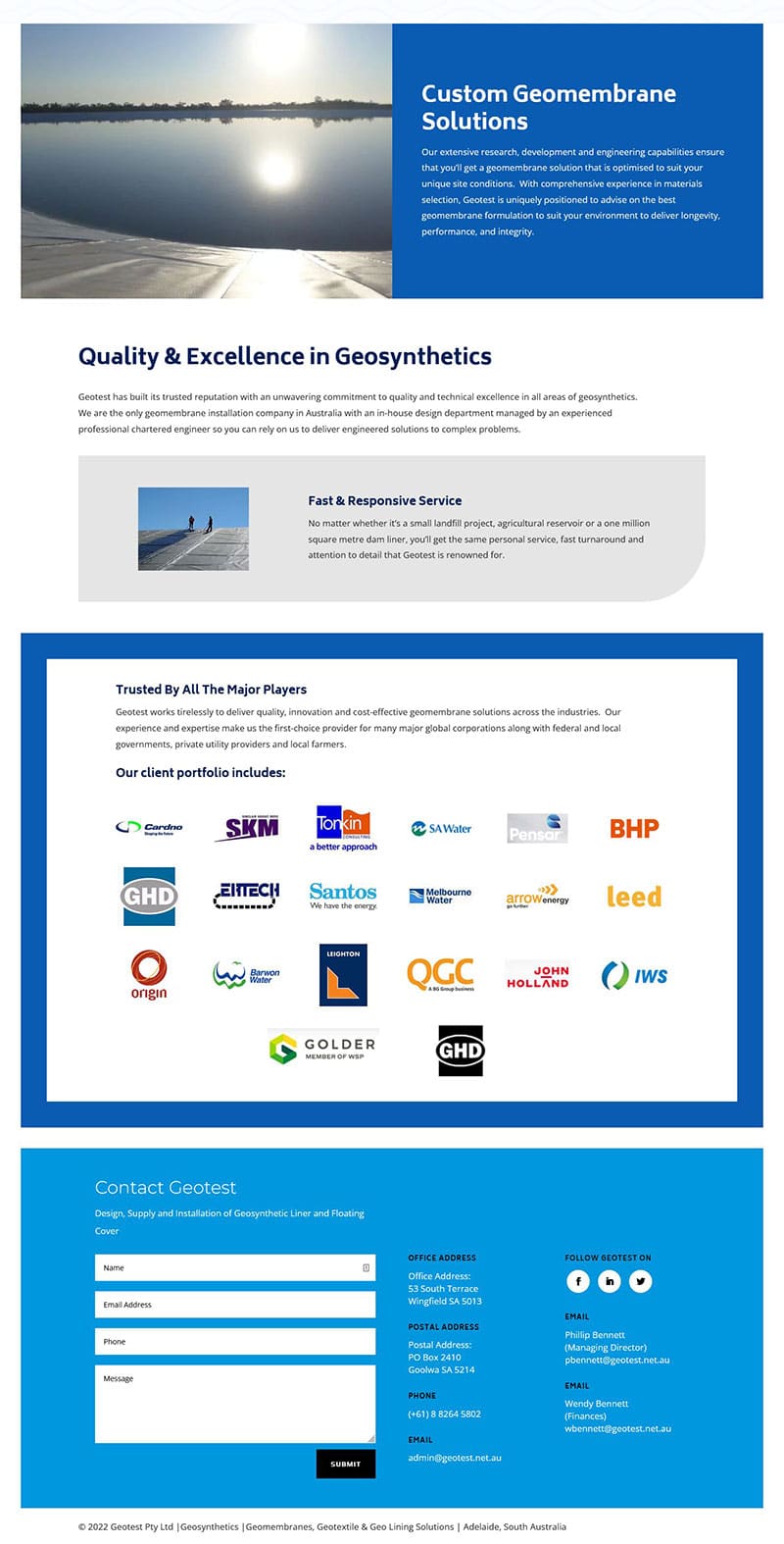 Geotest specialises in providing comprehensive geosynthetic solutions, including geosynthetics, geomembranes, geotextile geolining, and more. They offer professional end-to-end services for geosynthetic design, supply, installation, testing, repair, training, and construction quality assurance (CQA) both in Australia and globally.