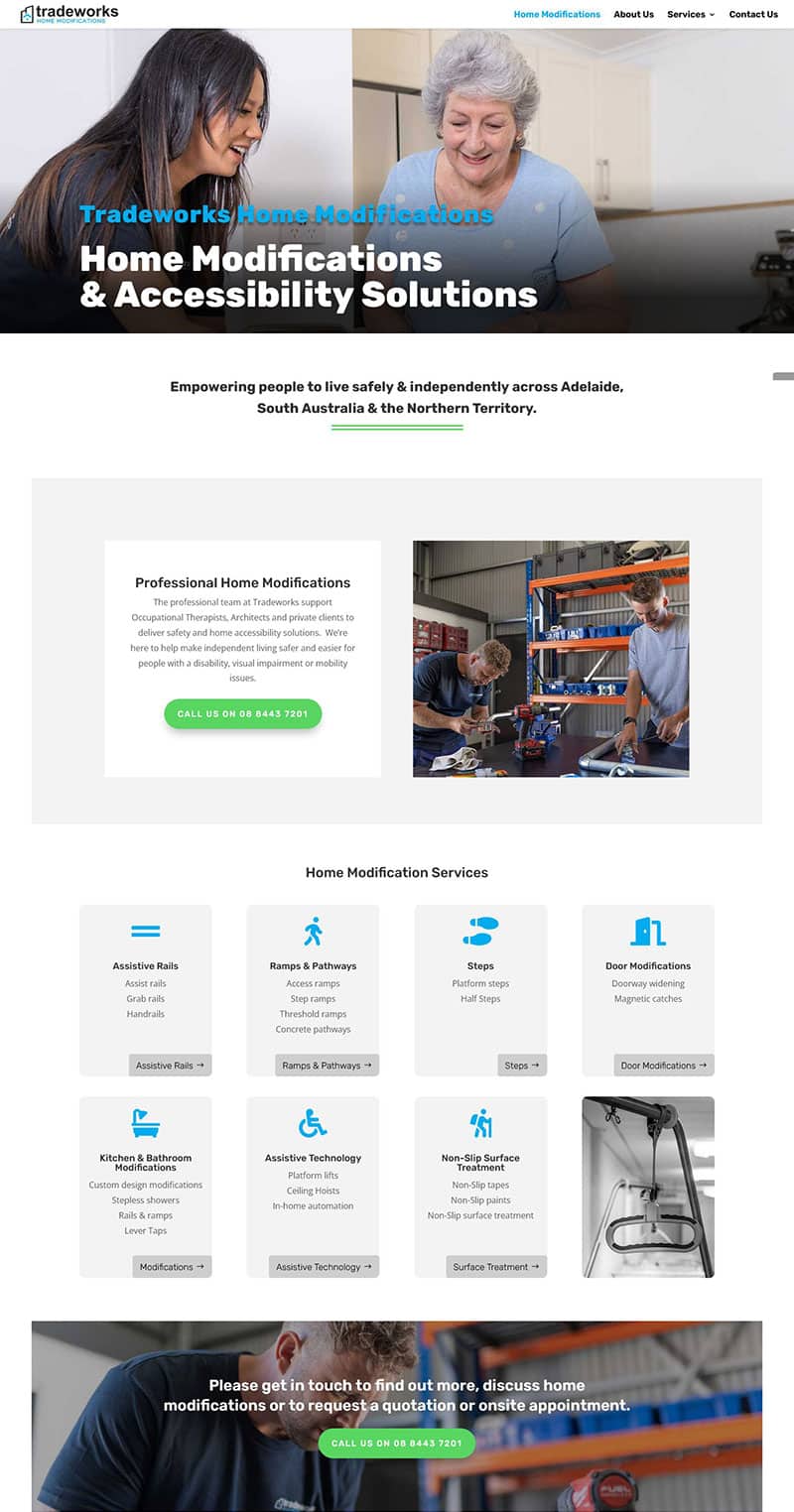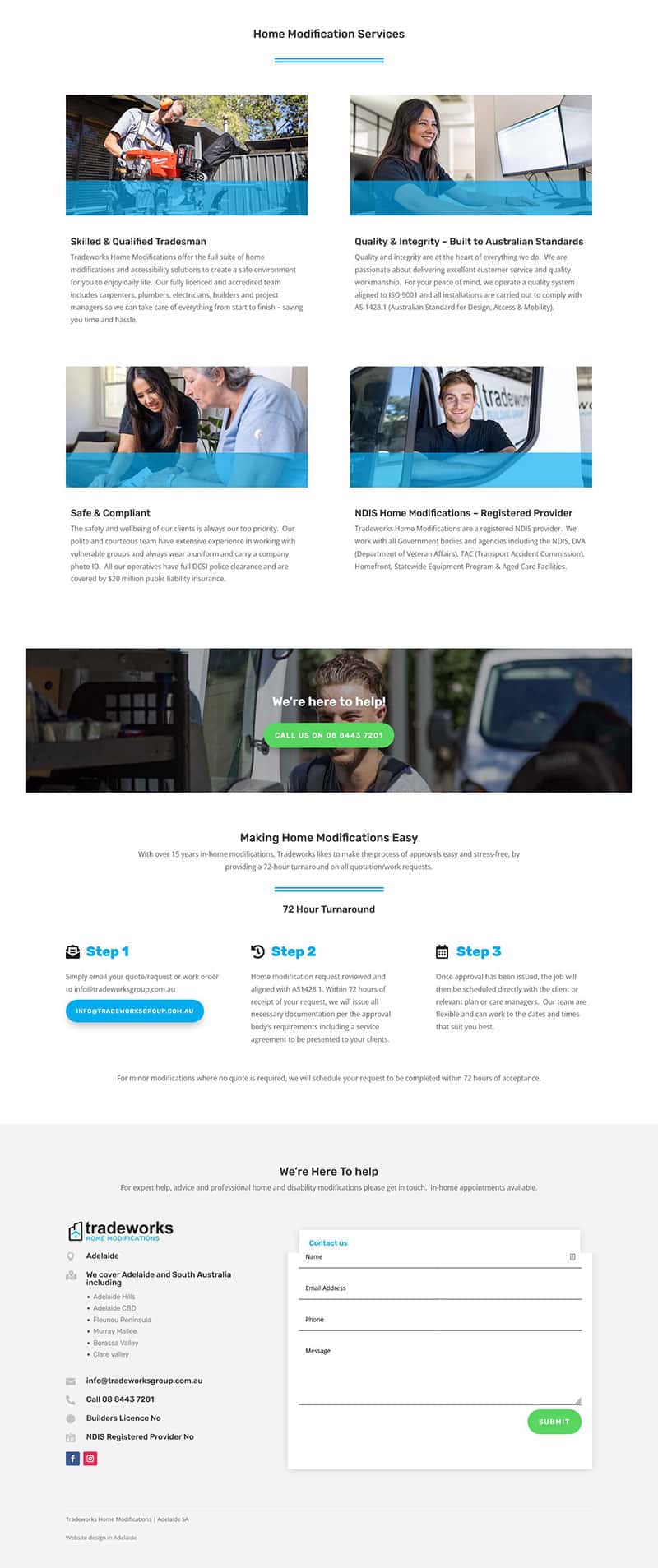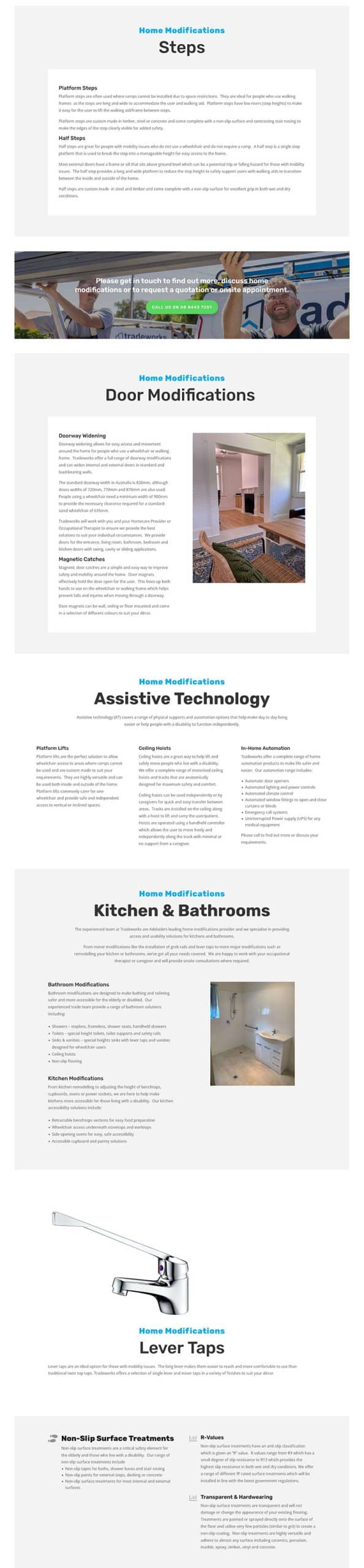 Chad the Managing Director of Homeworks based in Adelaide wanted a new website to promote his business specialising in NDIS home modifications. As a busy builder Chad wanted the ease and convenience of a complete ‘Done For Me’ package which included the website build, design and all the text content.