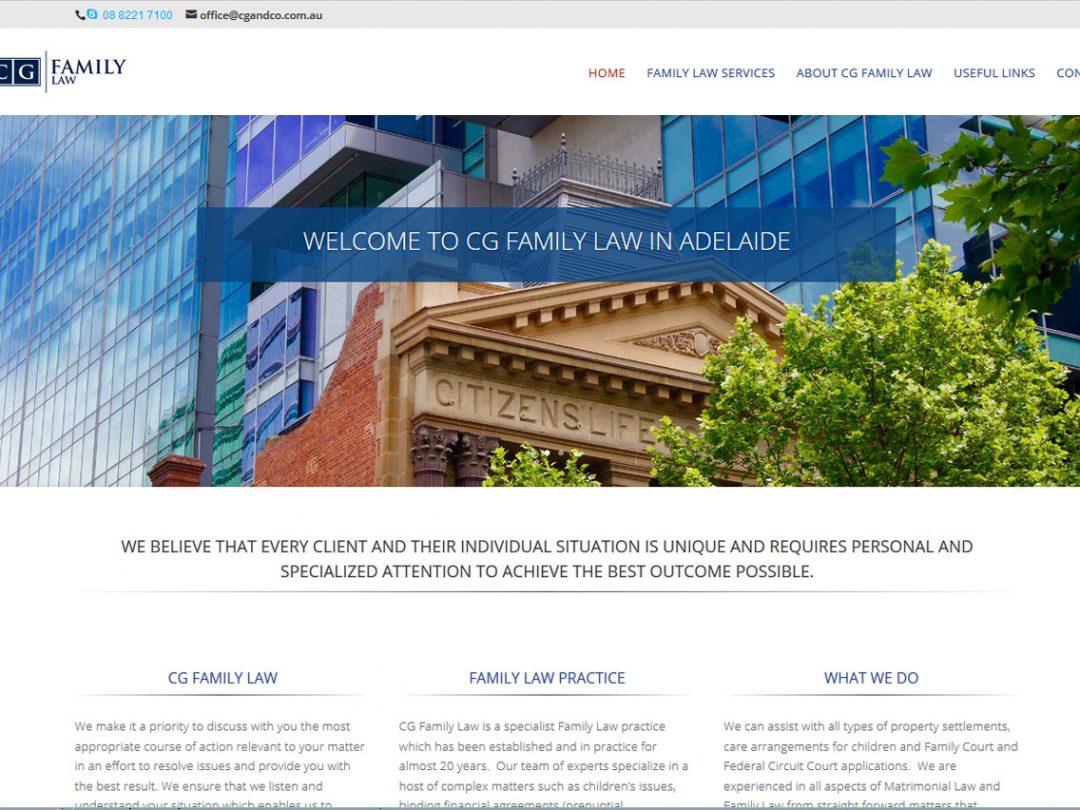 CG Family law need a new website as the focus of their services have changed. Website Adelaide built the previous website a few years back. The new website fuses on Family Law in Adelaide.