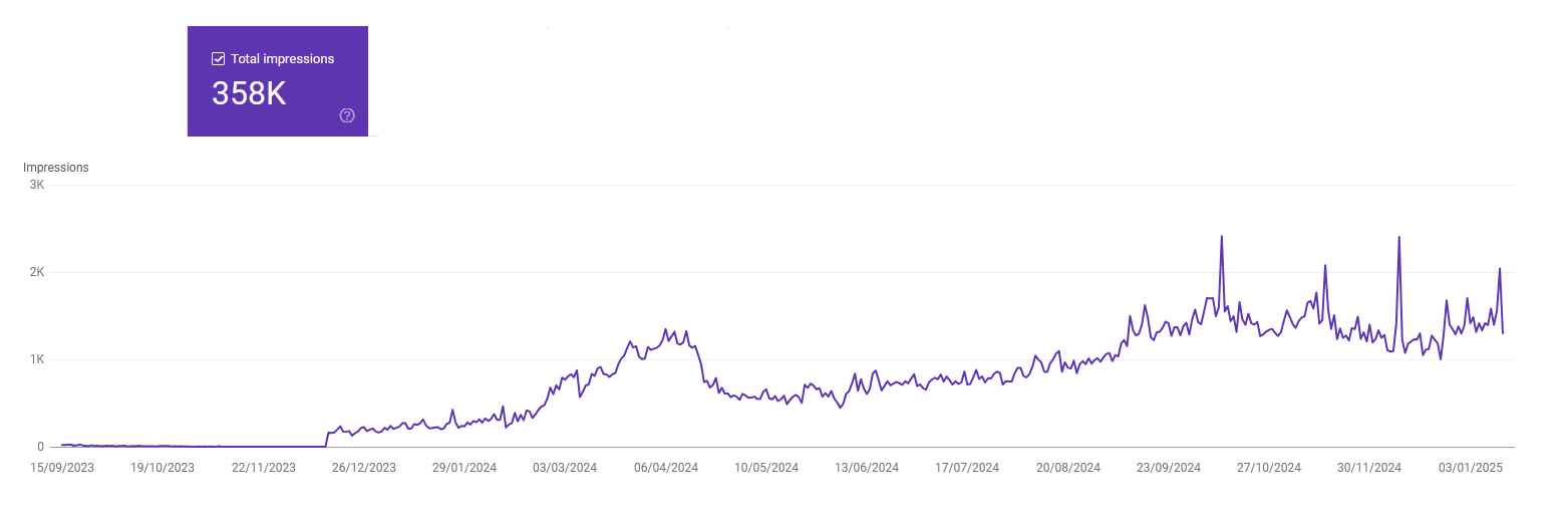 Google Search Console identified over 1,000 search queries where the website now ranks.